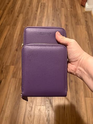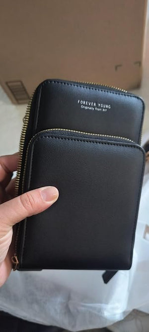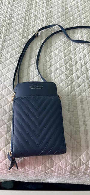 El bolso puede acomodar teléfonos de tamaño estándar a grande, asegurando espacio suficiente para otros esenciales.