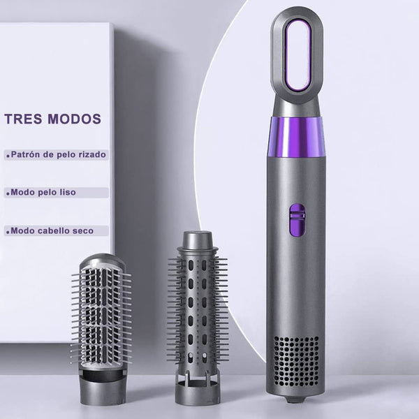 Incluye cinco accesorios intercambiables para alisar, rizar, dar volumen y masajear el cuero cabelludo.