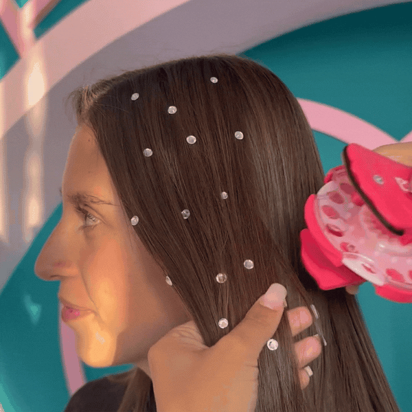 Añade un toque de magia a tu día con gemas que iluminan tu cabello y accesorios sin dejar residuos.